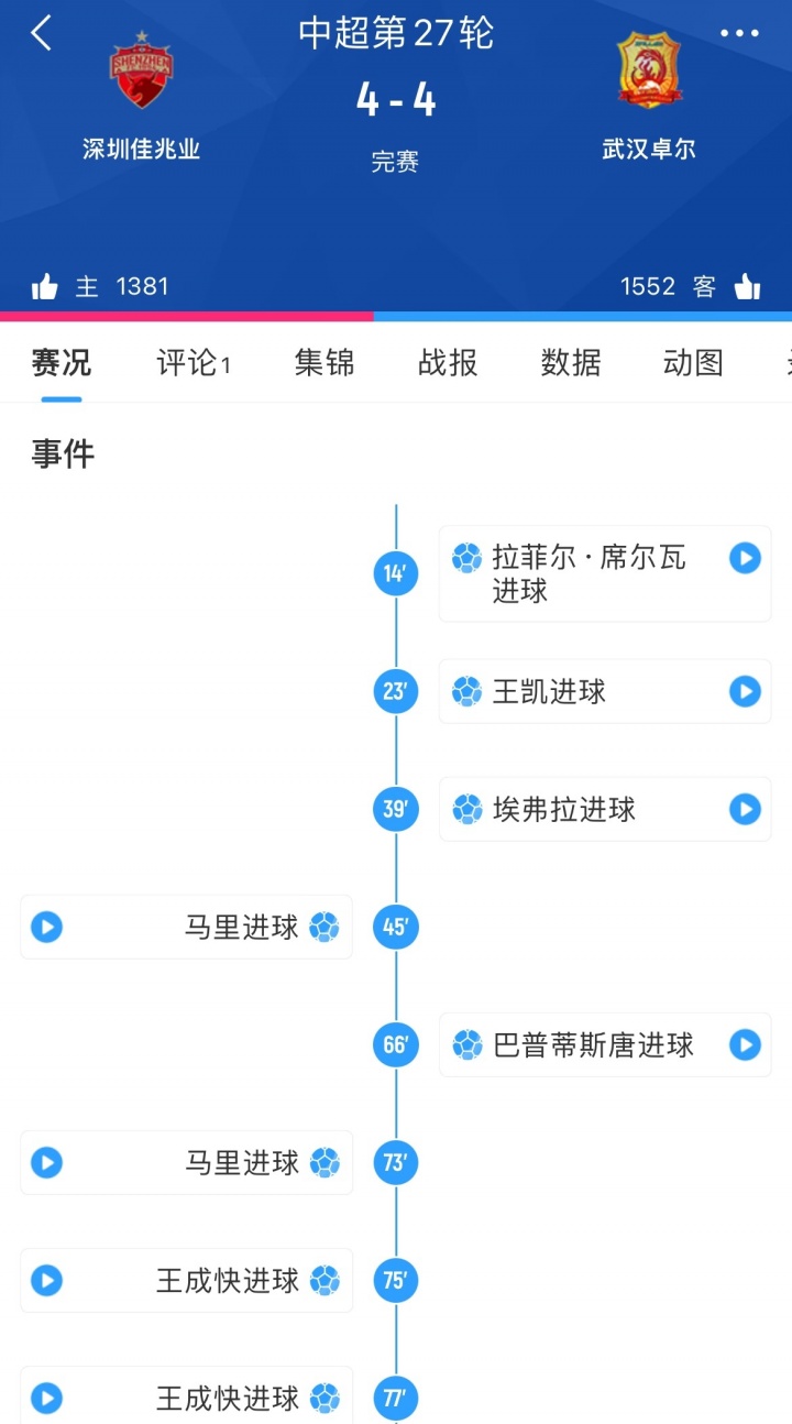 2019年深圳佳兆业4-4武汉卓尔赛事 集锦