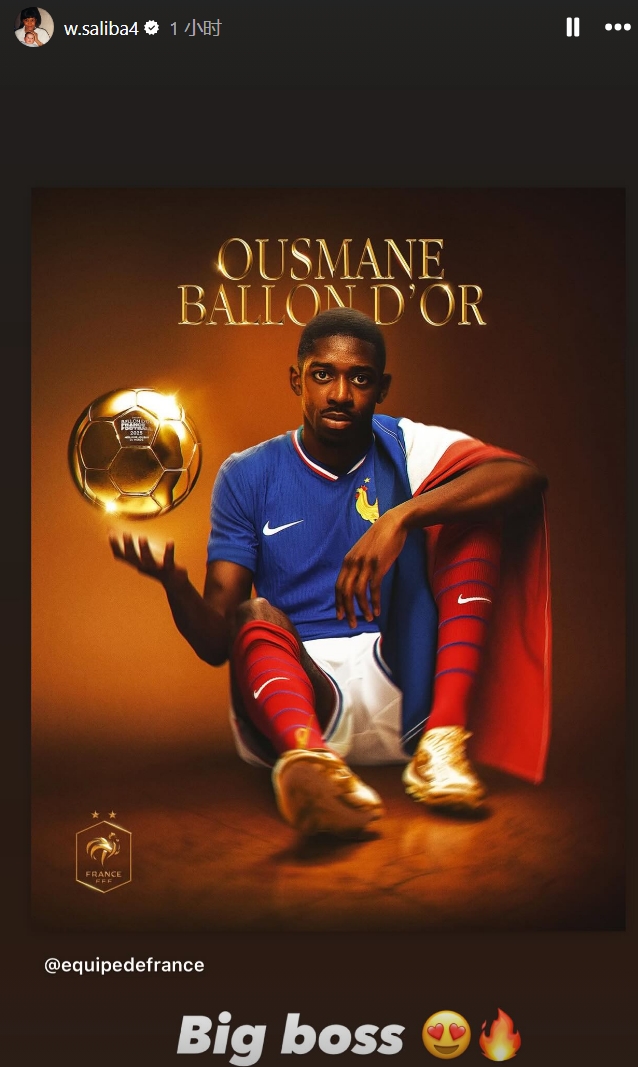 9月23日讯 在登贝莱获得2025年金球奖后,他在法国队的队友萨利巴通过社交媒体祝贺了他。