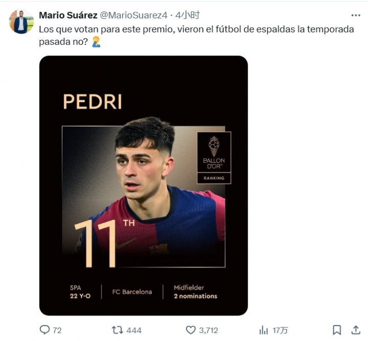 马竞旧将马里奥-苏亚雷斯发文点评:这些评选奖项的人体育赛事直播免费网站,上赛季到底看球了吗?🤦♂️