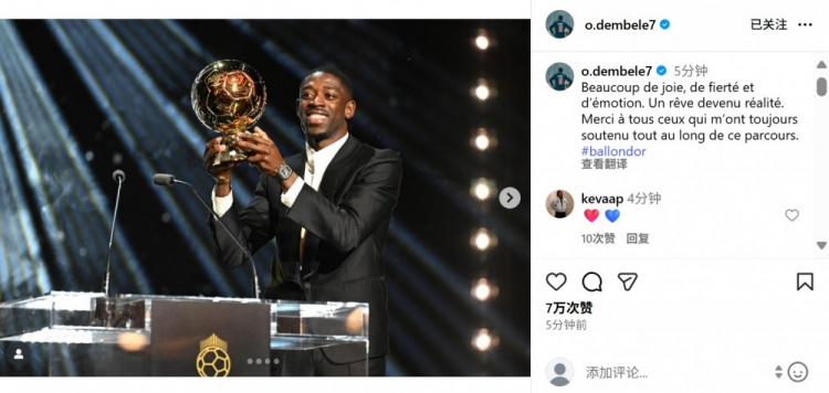 登贝莱在个人社媒也晒出手捧奖杯的照片,配文写道:“这一刻情绪万千,苏超直播在线观看无比开心与骄傲。我的一个理想 实现了jrs低调看球,感谢一路走来一直支持我的所有人!”