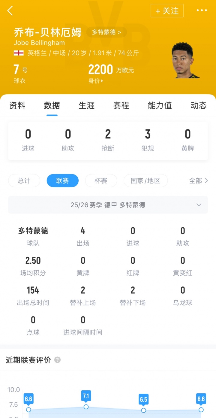 而据此前《图片报》报道,小贝林父亲曾不满球队打法+儿子被换下,与多特总监凯尔发生争吵。而如今这名20岁的英格兰中场球员已经连续三场赛事 没有杆位。此外,小贝林赛季至今6场0球0助,包括4轮德甲、一场德国杯以及一场欧冠。