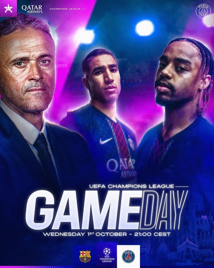 巴黎官推为海报配文:“在巴塞罗那的欧冠之夜!”jrs低调看球免费高清直播低调看球