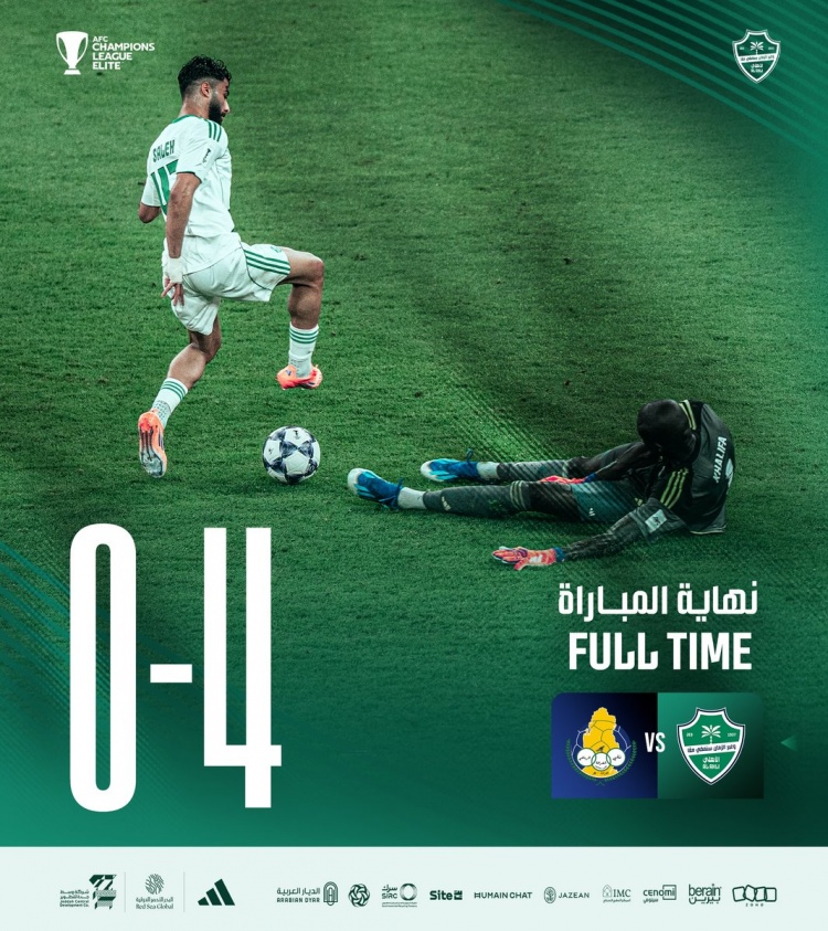 第76分钟,阿布沙马特锁定胜局,吉达国民4-0领跑 。
