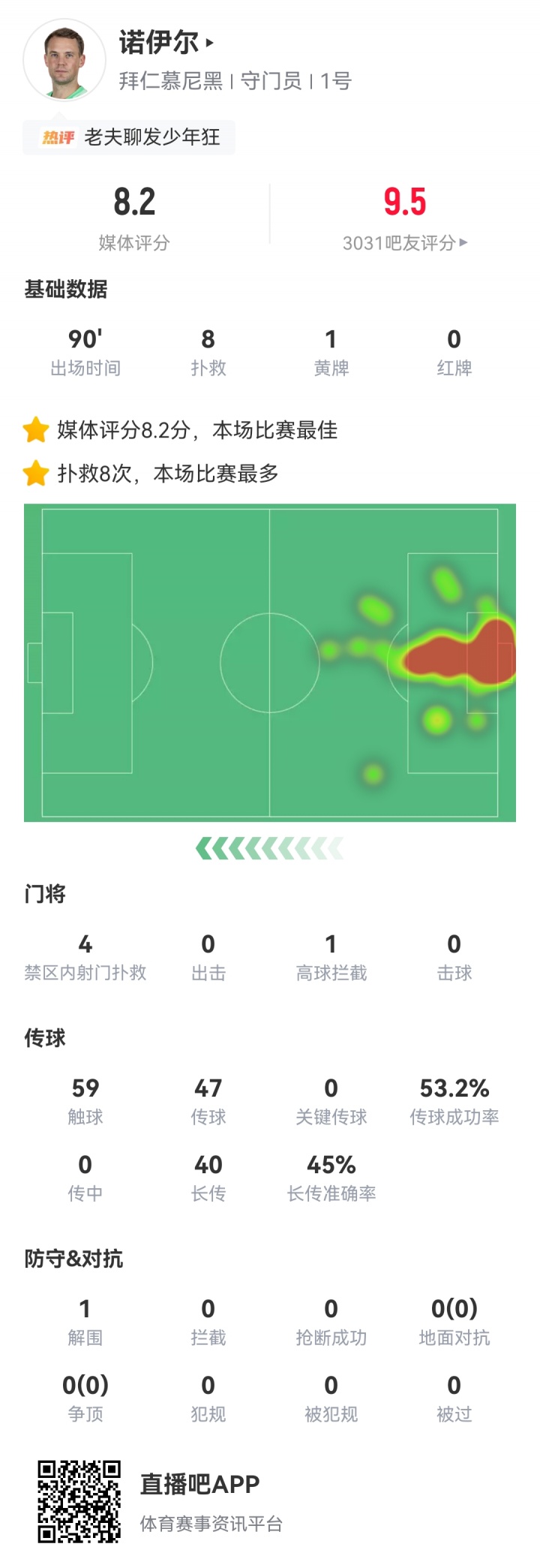 诺伊尔本场赛事 部分出色 抢救 ↓